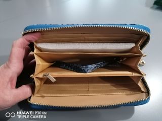 Cartera monedero y billetera, de polipiel de tonos azules, sin estrenar