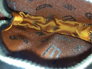 Monedero de la marca Etro con un diseño inspirado en una pelota de béisbol. - Cierre de cremallera. - Cadena metálica para colgar. - Costuras blancas decorativas.