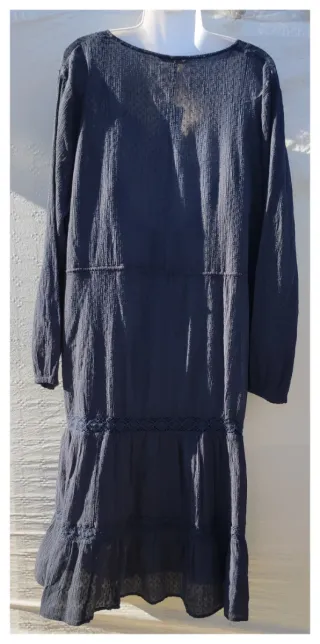 Vestido largo de manga larga con detalle de puntitos y cinturón. - Escote en V. - Cintura elástica con cordón. - Bajo con puntilla.