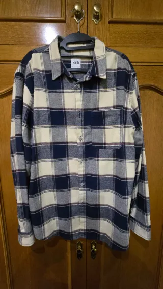 Sobrecamisa ZARA cuadros beige y azul