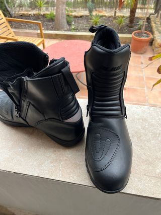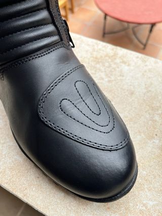 Botas de moto de cuero sintético, diseñadas para ofrecer protección y comodidad. - Cierre con cremallera lateral. - Detalle acolchado en la zona del tobillo. - Suela de goma antideslizante. - Refuerzo en la puntera.