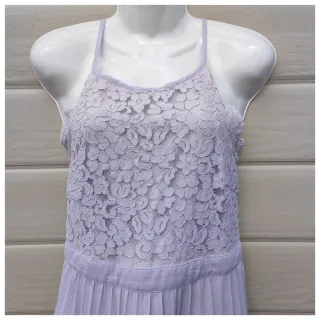 Vestido de tirantes con un delicado encaje floral en la parte superior y falda plisada. - Cuerpo de encaje. - Cintura marcada. - Falda plisada.