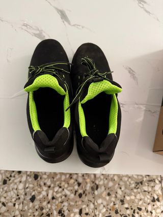 Botas de seguridad con un diseño moderno y llamativo. - Exterior en color negro. - Detalles interiores en color verde neón. - Cordones a juego con el interior. - Botas super comodas -Un solo uso