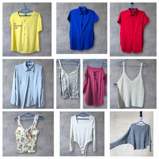 Lote de varias prendas de ropa (42 piezas) - 12 vestidos (45€) - 10 camisas mujer (20€) - 4 faldas (12€) - 4 pantalones mujer (1 corto) (12€) - 1 mono corto (3€) - 1 leggins corto (1€) - 3 chaquetas (10€) - 3 cardigans (12€) - 1 americana (10€) - 3 pantalones hombre talla 42 y 44 bershka y pull&bear (12€)