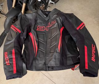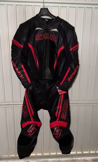 Mono de dos piezas SHUA en colores negro y rojo. Está sin uso, ya que se me hace más cómodo ir con vaquero y otra chaqueta. La talla marca 2XL, pero yo midiendo 1’80 me queda la chaqueta ajustada y el pantalón un poco grande. Añado foto de ambas partes. Sería mejor probárselo si estás interesado.