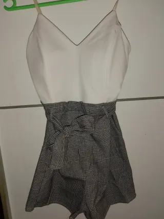 Conjunto de dos monos de vestir. - Mono blanco con detalles en la parte superior.talla M zara - Mono negro con encaje en la cintura. Talla M Pull & Bear