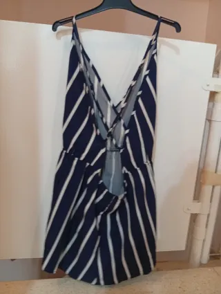 Mono corto con estampado de rayas marineras. La parte superior es de tirantes y la inferior es tipo short vaquero. - Estampado de rayas horizontales. - Detalle de lazada en la parte delantera. - Short vaquero con cinturón. Precio : 4.99€ Se entrega en mano : -Toledo (Pueblo La Guardia). -Madrid (a concretar día,lugar y hora). Por compras minimas. Se hace envíos por Correos o Inpost.