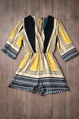 Mono de satén con un bonito estampado. Es una prenda cómoda y ligera, ideal para diversas ocasiones. - Tejido satinado. - Diseño estampado. - recogido en hombros