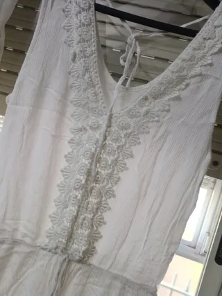 Está NUEVO SIN ESTRENAR. Color blanco. Queda maravilloso y parece un vestido con la comodidad del pantalón, y con doble tela que no se marca nada. Espalda en V, baja que queda precioso. Escote V no muy pronunciado, muy cómodo. Talla M (yo estrené la talla L). Oportunidad!!!!