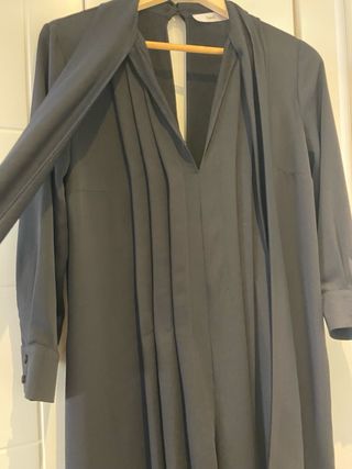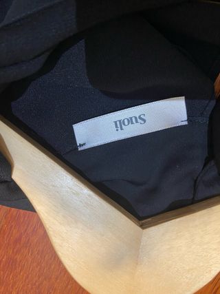 mono elegante de la marca italiana SUOLI negro de noche o trabajo talla italiana 38 / XS - S sin uso ( parece seta pero es de polyesrer y no aruga ) delante se puede dejar abierto o cerrar al cuello o mas bajo