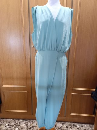 Mono largo de Zara con un diseño elegante y favorecedor. Ideal para ocasiones especiales o para un look sofisticado. Un uso solo y fue caro - Corte cruzado en la parte superior. - Cintura elástica para un ajuste cómodo. - Piernas anchas y fluidas.
