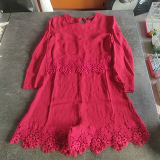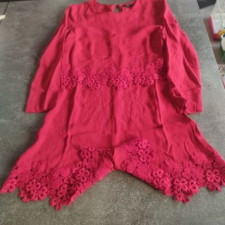 Mono de Zara en color rojo, con detalles de encaje y manga larga con pantalón corto. - Nuevo, usado una vez y lavado. - Adorno de encaje en la zona del pecho. - Base de encaje en el bajo del pantalón. - Cierre de lágrima hasta media espalda. - Segundo cierre con botón de nácar en el cuello. - Talla S. - Forro en la parte superior. - Diseño elegante y muy favorecedor.