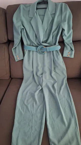 Precioso mono verde, ideal para una ocasión especial. Es de manga larga con puños abotonados y tiene un corte favorecedor. Aunquea talla es XS estaría entre XS-S. - Diseño elegante y sofisticado. - Tejido fluido y agradable al tacto. - Perfecto para eventos de noche.
