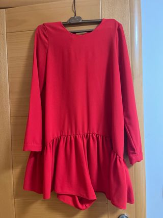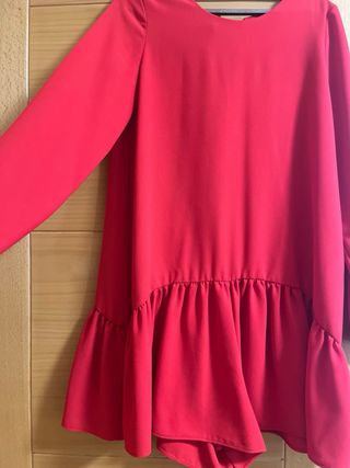 Vestido/Mono de Zara con un diseño moderno y favorecedor. - Manga larga. - Corte con volantes en la parte inferior. - Es Mono por lo que lo hace más cómodo para llevar aunque sea corto. pero al tener volantes a la vista es un vestido. - Lazo en la nuca que le da un toque especial para las fiestas - Escote redondo.