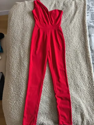 Precioso mono rojo, ideal para una ocasión especial. Es de un color rojo intenso y tiene un diseño elegante. - Es un mono largo. - Tiene mangas con vuelo. - Cierre con lazo en la espalda. - Cintura elástica.