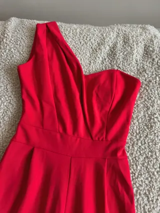 Precioso mono rojo de Zara Es de una sola manga y tiene una abertura en la espalda.- Tejido fluido y de caída impecable. - Aplique dorado en el hombro También sirve para talla M