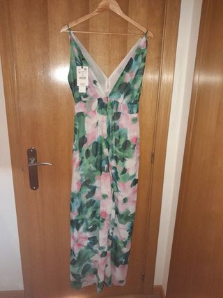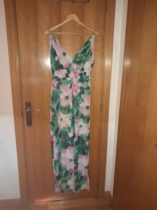 Mono largo estampado verde pastel y motivos florales, sencillo elegante y muy cómodo y fresquito. No transparenta. Marca Zara. Talla 38.