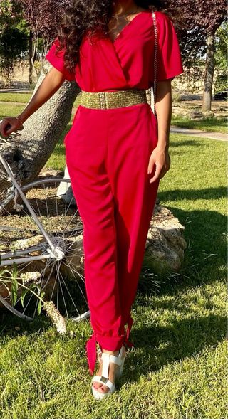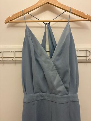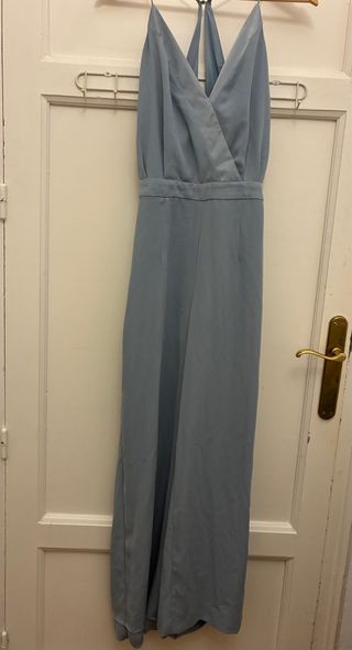 Mono largo puesto para boda. Talla XS pero da más talla. Tiene dos bolsillos en los laterales muy prácticos como se ve en la foto, goma en la cintura para ajustarse al cuerpo. Vestido holgado y muy cómodo.