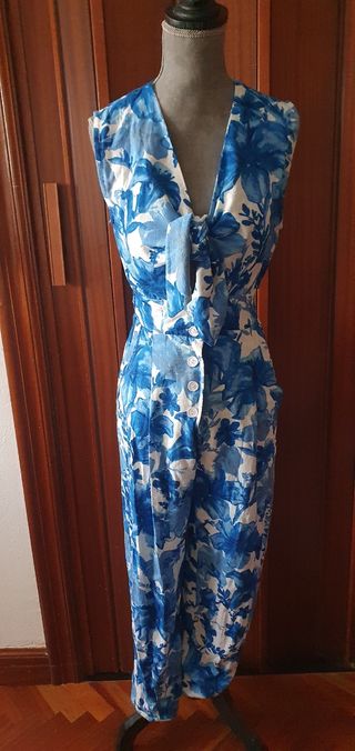 Mono azulón talla S de Zara trafaluc. Tiene un pelín descosido en la espalda (apenas se nota) Adecuado para bodas u otros eventos