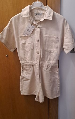 Mono corto de Zara con un diseño moderno y fresco. Ideal para un look casual. Talla S - Manga corta. - Cuello camisero. - Cierre de botones. - Bolsillos delanteros.