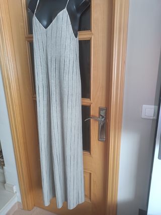 impresionante mono largo de Zara pierna ancha cremallera detrás espalda descubierta gris oscuro casi negro con rayas diplomática tejido ligeramente elástico y no se arruga bolsillos a los lados tiene mucha calidad y puesto queda espectacular