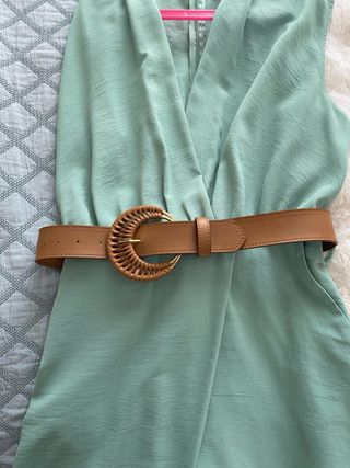 Mono para eventos especiales color verde agua de la tienda zara. Cremallera trasera y cinturon marrón