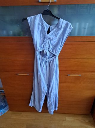 Mono de pantalón largo ancho y de tirantes como con un nudo en el centro del pecho, es de color azul verdoso. Es muy elegante para algún evento, es de zara la talla M. Cualquier cosa no dudéis pero no tiene ningún defecto. Es muy cómodo y tiene una cremallera en la parte de atrás.