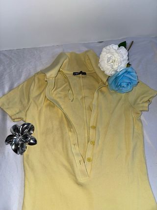 Mono corto de Zara en color amarillo. - Diseño de canalé. - Cuello tipo polo. - Cierre de botones. - Manga corta.