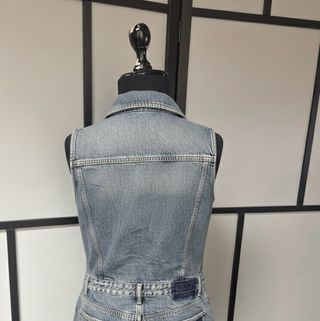 Mono vaquero corto de Zara. Un básico para tu armario. - Diseño sin mangas. - Cuello camisero. - Cierre de botones. - Bolsillos en el pecho. - Cintura marcada. - Bajo deshilachado.