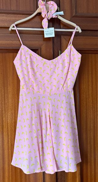 Mono corto de Zara con estampado de bananas. - Talla XS. - Color rosa. - Nuevo sin etiqueta.