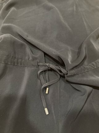 Elegante mono negro de Zara con detalles de transparencia y cinturón. - Mangas largas abullonadas con puño elástico. - Cuello alto fruncido. - Cintura elástica con cordones para ajustar. - Tejido ligero y vaporoso.