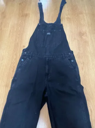 Peto denim efecto desgastado en color negro, con cierre en el lateral con cremallera. Vale tambien para una talla M