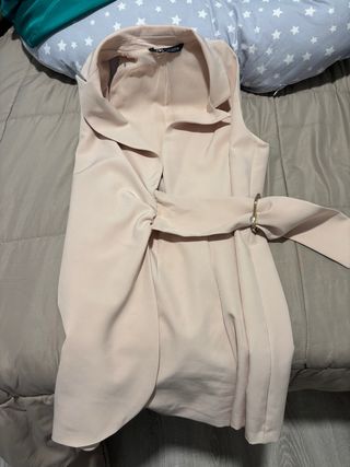 Mono elegante de Zara con un diseño moderno. Usado solo una vez en un evento. Ideal como fondo de armario: - Cierre de botones dorados. - Corte tipo chaleco. - Bolsillos frontales.