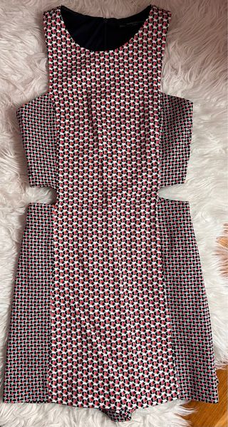 Mono corto de Zara con estampado geométrico. - Diseño de rombos en blanco y negro. - Manga corta. - Cremallera en la espalda. - 2 bolsillos delanteros