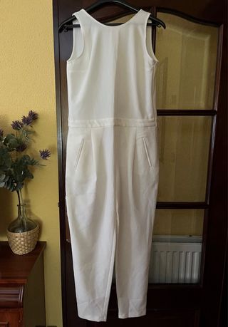 Precioso vestido pantalón de Zara, talla S. Es de color blanco y tiene un diseño impecable. - Corte elegante y favorecedor. - Cremallera trasera invisible. - Bolsillos laterales. Escucho tu oferta