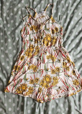 Precioso mono corto de Zara, ideal para el verano. Es de color multicolor con un estampado floral precioso. Características: - Diseño de tirantes finos. - Cierre con lazada en el delantero. - Corte holgado y cómodo. - Tejido ligero y fresco.
