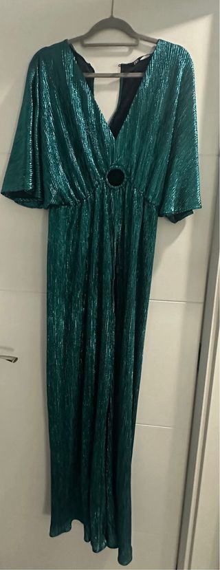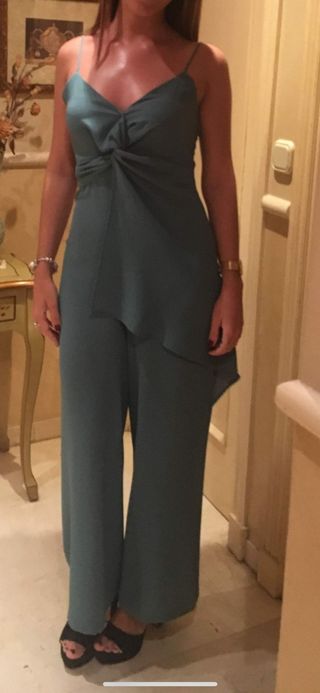 Mono elegante de Zara, perfecto para ocasiones especiales. - Diseño halter con lazada. - Espalda descubierta. - Pierna ancha.