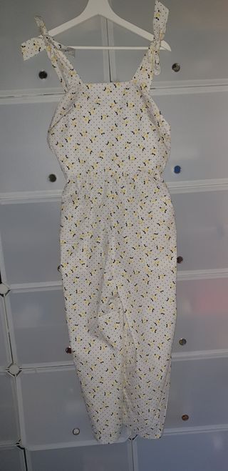Mono de Zara con un bonito estampado. - Diseño con escote cuadrado. - Cintura elástica. - Bolsillos laterales. Abertura con botón en la espalda