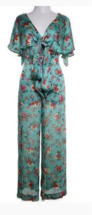 Precioso mono largo con estampado floral. Ideal para eventos especiales. - Diseño elegante y favorecedor. - Escote en V. - Sin mangas. - Tejido ligero y fluido.