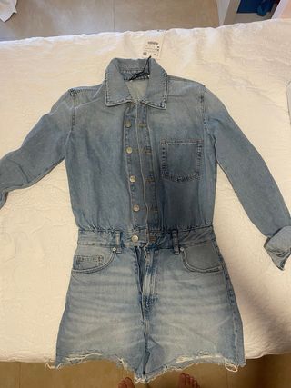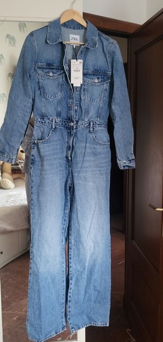 Precioso y cómodo mono vaquero de Zara. - Diseño de manga larga. - Cierre de botones metálicos. - Dos bolsillos delanteros funcionales. - Ajuste en la cintura. Me lo compre y lo use una vez por que no me queda bien y ya le quite la etiqueta