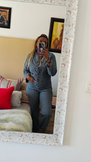 como nuevo, bolsillos en caderas,48cm pecho, 52cm cadera,165 de largo