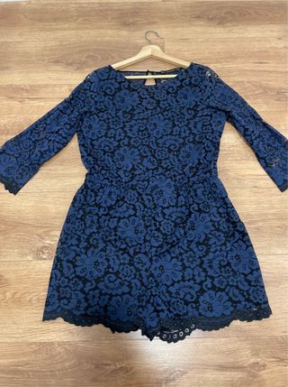 Mono corto de encaje en color azul y detalles en negro. Zara Talla L