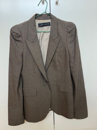 Americana de Zara en color marrón. Un clásico, en perfecto estado. tiene unas pinzas en los hombros que le hace una forma muy mona. - Cierre de un botón. - Bolsillos frontales. - Diseño entallado.