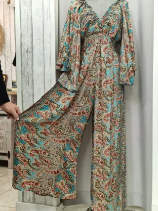 Mono largo con un diseño elegante y estampado. - Manga larga. - Cinturón a juego. - Cuello camisero. Licra de calidad. Nuevo a estrenar. Comprador x alguna ocasión y nunca lo estrené..