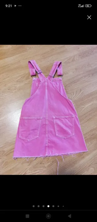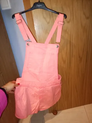 Mono vaquero de color rosa, en perfecto estado, de Bershka, talla S. - Diseño con peto y tirantes. - Bolsillos delanteros y laterales. - Cierre con botones a los lados.
