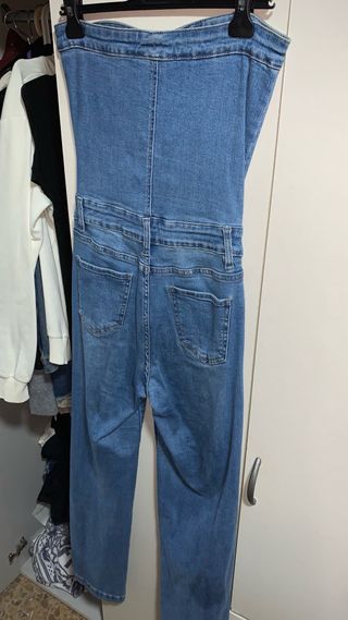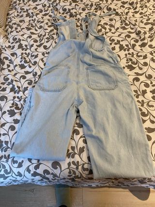 Mono vaquero de Zara, con un diseño moderno y cómodo. pequeña mancha que se aprecia en la tercera foto. ideal para uso durante el embarazo - Tirantes ajustables. - Cierre de botones en la parte delantera. - Bolsillos en la parte delantera y trasera.