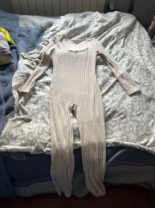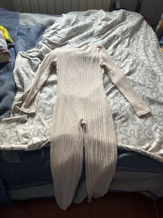 Mono largo de tejido acanalado. Es una prenda cómoda y versátil. - Manga larga. - Cuello redondo. - Piernas largas.
