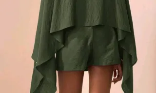 Mono elegante de color verde, ideal para cualquier ocasión. Su diseño moderno y favorecedor lo convierte en una pieza clave para tu armario. - Tejido ligero y con textura. - Detalle de nudo en la cintura. - Corte amplio en las piernas.