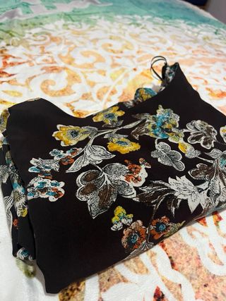 Mono corto negro con estampado floral. Tiene tirantes finos y cintura elástica. Apenas usado un par de veces. Es muy fresquito