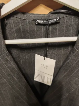 Mono de vestir de Zara con un elegante diseño de raya diplomática. - Diseño cruzado tipo blazer. - Cintura marcada con botón. - Pierna ancha.